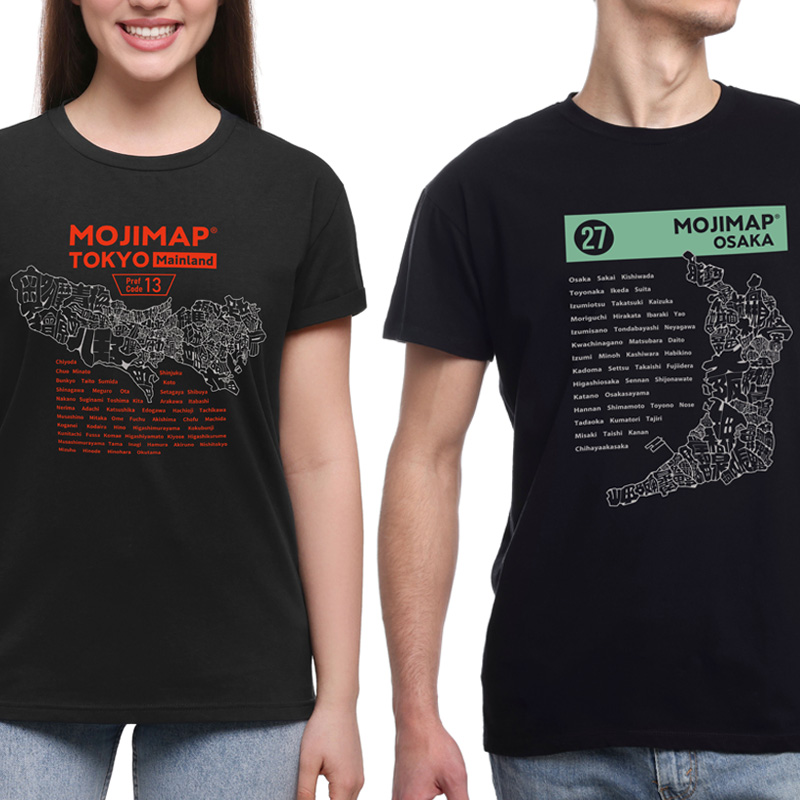 一見ふつうの地図に見えて、近づいてみると、すべて地名で書かれた文字。コミニュケーションのきっかけともなるデザインTシャツです。